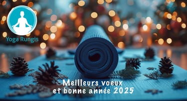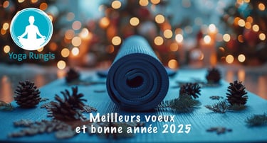 Yoga Rungis vous souhaite une très bonne année 2025. Que la pratique du yoga et de la sophrologie vous apporte ce dont vous aurez besoin cette année : détente, calme, souplesse, tonicité, équilibre... Rendez-vous pour la reprise des cours le lundi 6 janvier 2025.